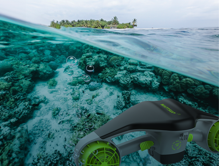 Die Batterie des Sea Scooters ermöglicht eine Nutzung von bis zu 35 Minuten, sodass Sie große Distanzen in den Gewässern zurücklegen können.